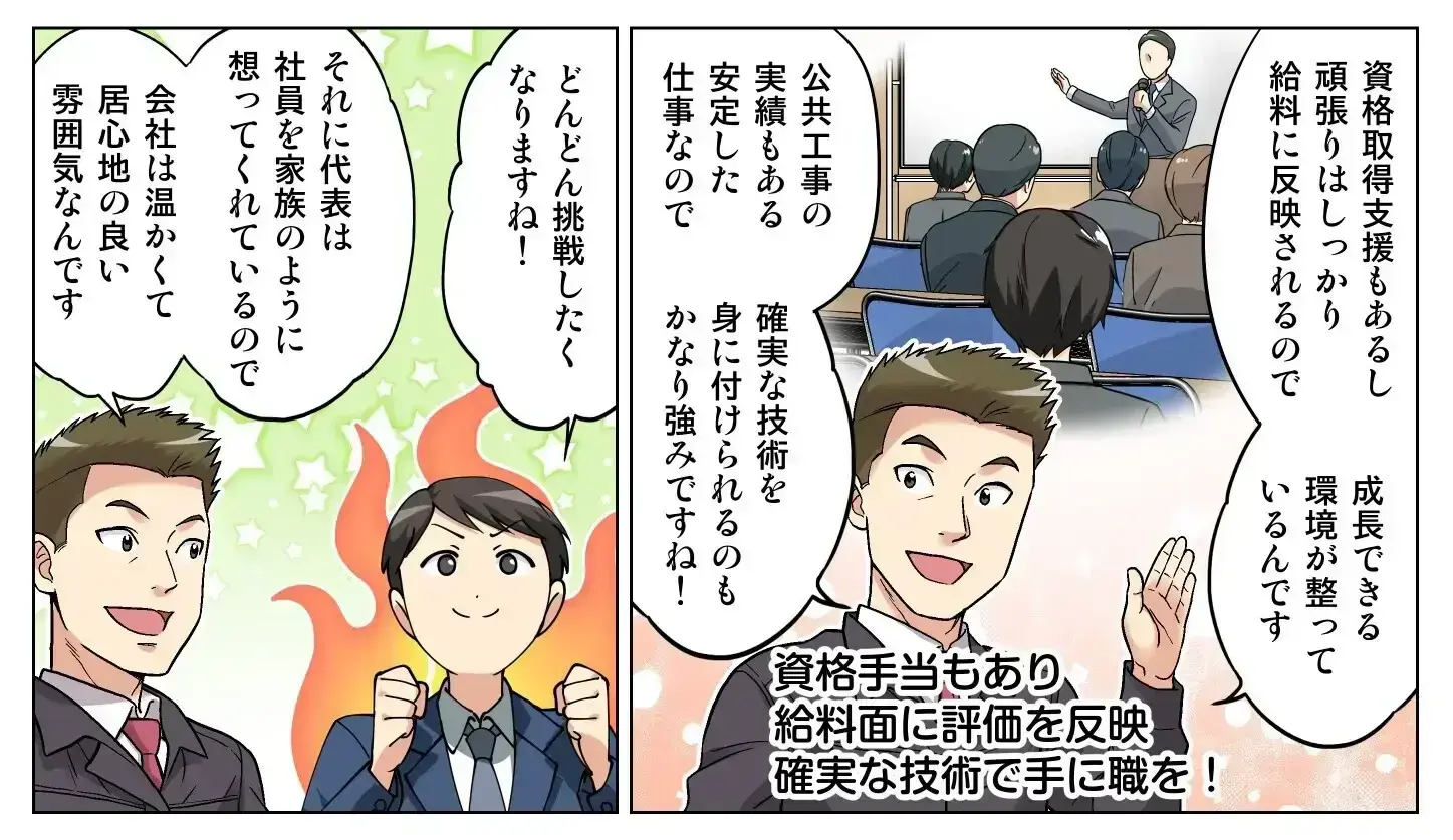 創和技建で働く魅力を漫画でご紹介。津市をはじめ、伊賀市・津市・松阪市で求人をお探しの方は参考にしてください。